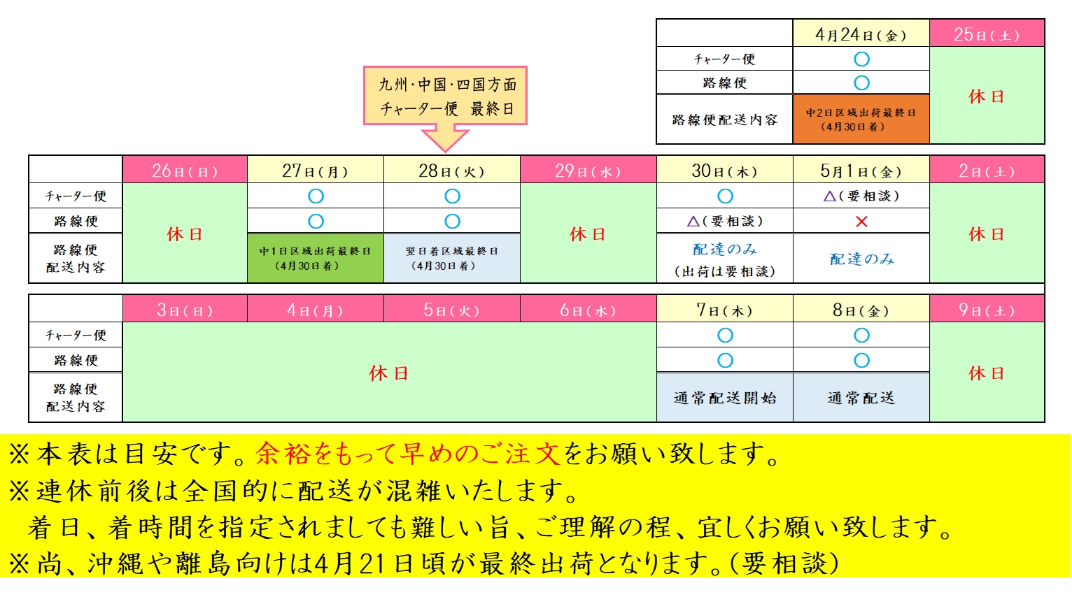 また、当該期間前後の出荷は混雑が予想され、お客様にはご迷惑をおかけする場合がございます。 予めご了承くださいますようお願い申し上げます。 敬具