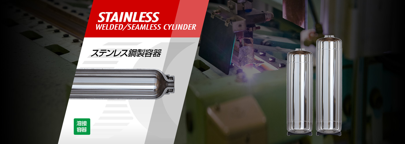 エスケイシリンダーは、規格品はもちろん、あらゆる仕様のステンレス鋼製容器の製造開発が可能です。ステンレス鋼製溶接容器では、材料の段階から独自の研磨を実施し、専用TIG溶接システムによる高品質な仕上りを実現。固溶化熱処理を施した上で全数X線検査を実施するなど、万全の品質管理を行っています。